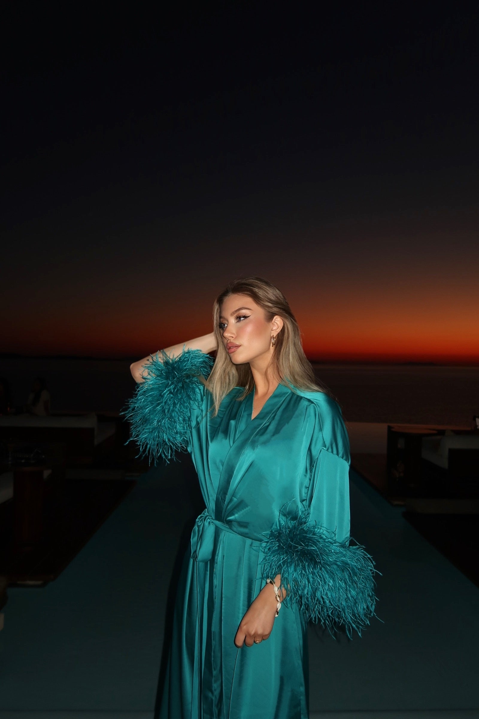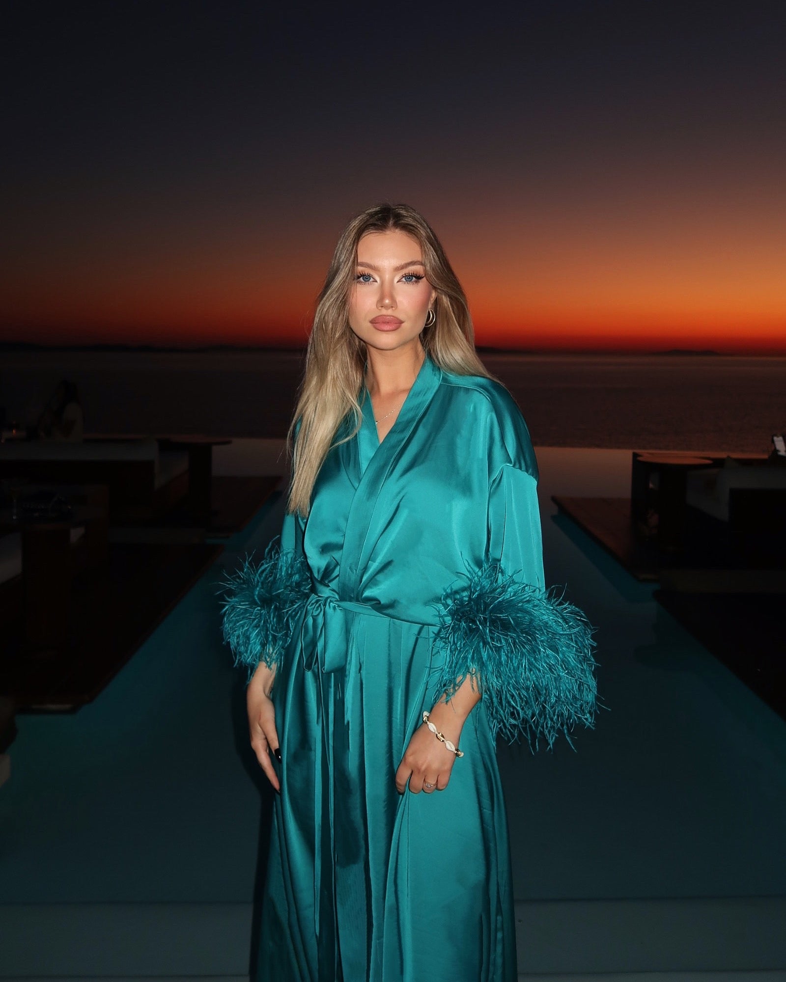 Merész, mégis elegáns – a Layla Ocean kimono a klasszikus nőiesség és a finom luxus tökéletes egyensúlya.